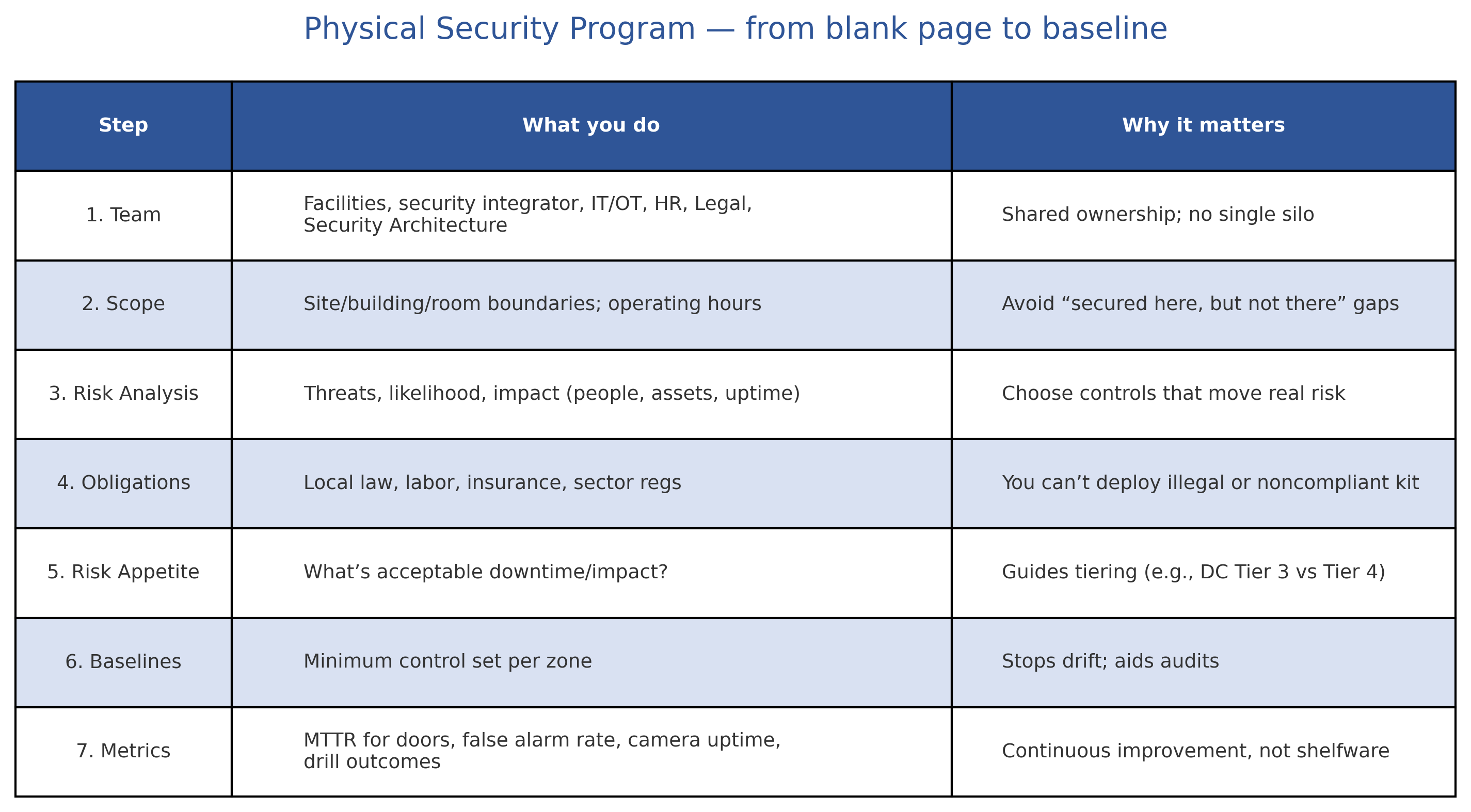 Physical Security Program — from blank page to baseline
