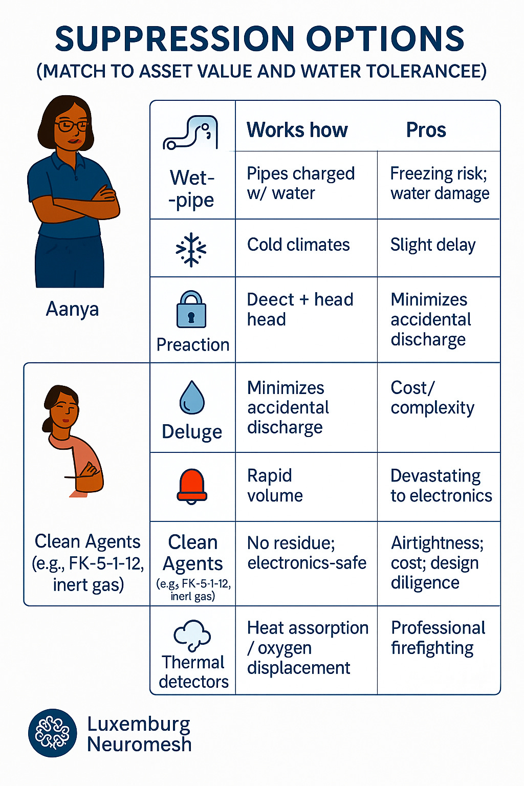Q4. Anya proposes preaction sprinklers for the DC. What is the most accurate rationale?
